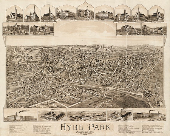 Map Of Hyde Park Suffolk Co Massachusetts Ma 1890 Etsy